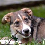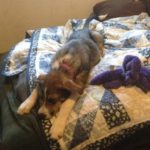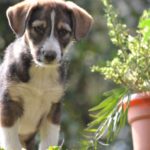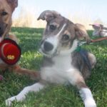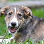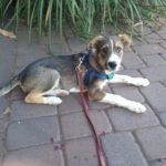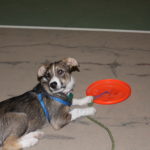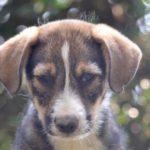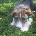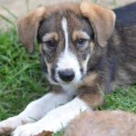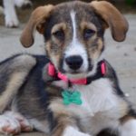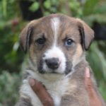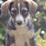 Although their mama is a medium sized dog, we think that Rosalina will be a big dog. She will also have medium length hair. Rosalina is about four months old and is available for adoption.