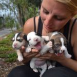 Good samaritans brought the mother (who was suffering from a terrible skin condition) and the three remaining puppies in to their home and fostered the family. Mama dog is now healthy and will be available for adoption soon, too.