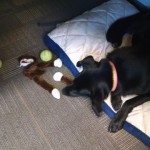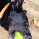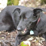 Allegra has been with us since June of 2013. We think she was about 9 months old when we got her. She is a stunning young German Shepherd cross, inky black with a tiny white blaze on her chest and shiny as a new penny.