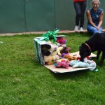 Allegra loves people, and once she gets to know you she is totally connected. She adores children and loves nothing as much as playing with them or being cuddled by them. She is whip smart, and has been clicker trained. She has excellent obedience and a pretty cute repertoire of tricks in her bag. She was pretty badly treated in her former “home”, and was definitely hit, so positive based training is very important with her. She loves to figure out what is being asked of her, and she loves to work for food, so she is a dream to train.