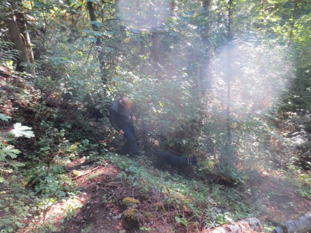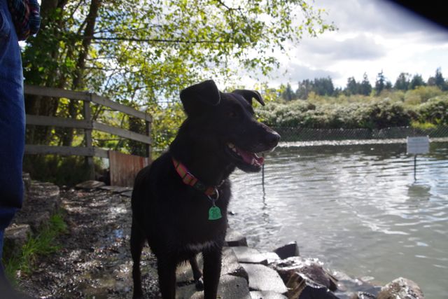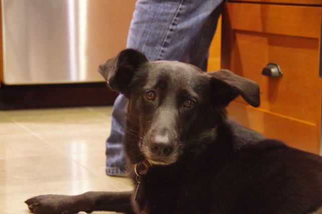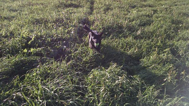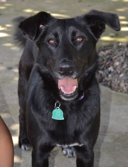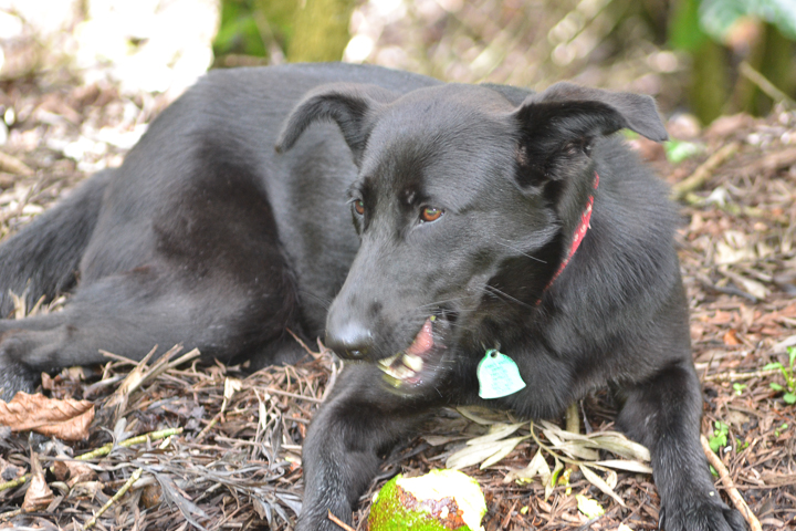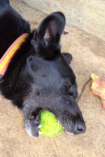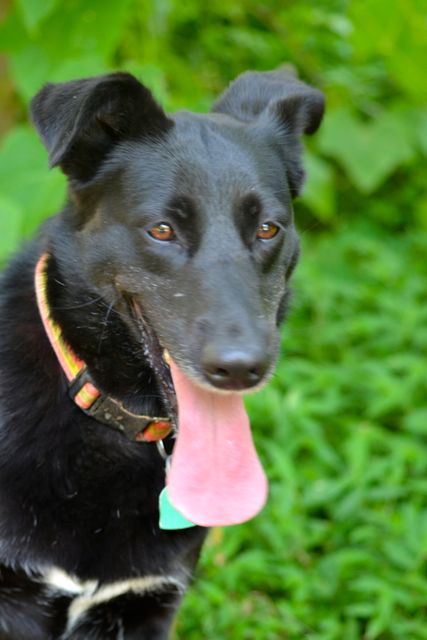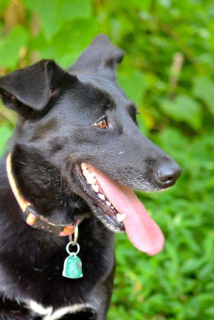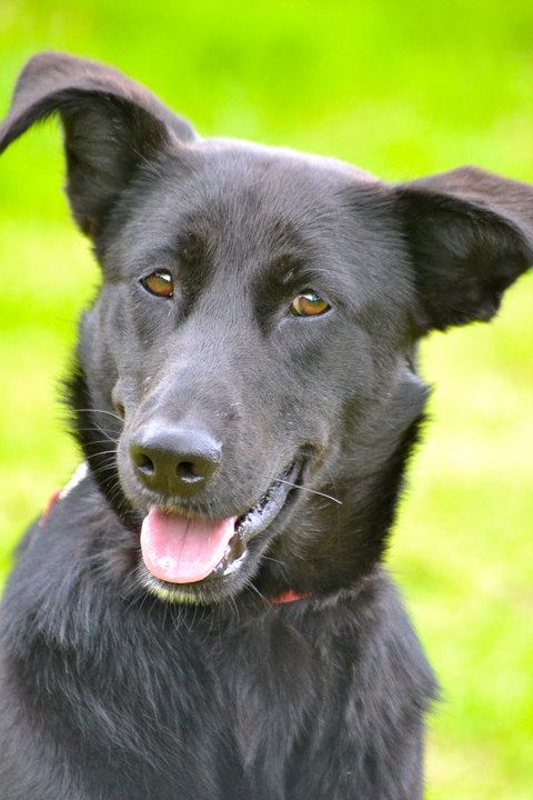 Allegra has been with us since June of 2013. We think she was about 9 months old when we got her. She is a stunning young German Shepherd cross, inky black with a tiny white blaze on her chest and shiny as a new penny.