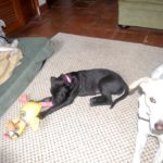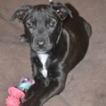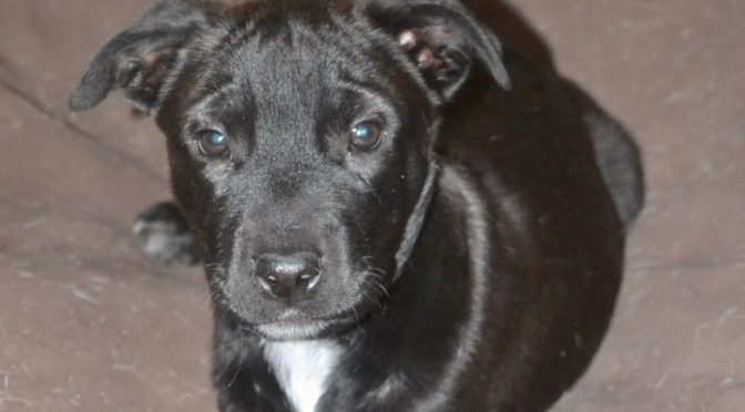 Babe is now about 4 months old, healthy, sweet, and playful. She loves people-loves to cuddle and loves to play. She is great with other dogs and puppies, and is okay with cats, although a little fearful of them. She is a sturdily build puppy and looks like she will be smaller to mid-sized. She has a wrinkly face and double chin, making her look like she has some Shar Pei in her.