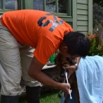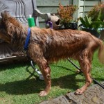 Friends Tessa and Gerson brought him in as he was having such a hard time on his own. He could barely walk and frequently urinated on himself as he couldn’t stand up. He appeared very painful, and when he did walk his gait was uneven and very week. We brought him in and had a full veterinary workup done on him, blood work taken, was tested for heartworm (negative!), had him neutered neutered, had a series of x-rays taken of his hips and lower back, and had a dental with extractions.