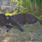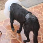 Baxter came to us via Tessa and Gerson, who rescued him in the summer. They spotted him limping along with a huge open gash along his hips. This was a machete wound-someone had chopped him open with one!