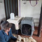 She did fairly well for a while, but continued to eat very little, vomiting frequently. Volunteers Neil and Jon took her home to live with them so that they could make special, delicious food- chicken and rice stews, scrambled eggs, liver, and anything that we could tempt her with and they made sure she was well hydrated, and just generally spoiled her. They got up with her multiple times each night to let her out and monitor what she was eliminating, and to monitor and clean up after her each time she vomited up food or water.