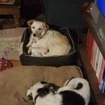 Through all of this, Belsey was happy, frisky and very affectionate. She loved being a house dog, and figured out the comfort of a sofa very quickly. Getting enough food into her was a struggle. She wanted to eat, but could only hold down tiny amounts. Neil and Jon gave her extra hydration subcutaneously. For a while she seemed to rally, and then went downhill. Danielle came to visit, bringing poached chicken to tempt her. Belsey tried to eat, but simply couldn’t.