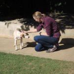 We brought her in to the rescue after she had recovered from her spay. Belsey is very sweet and gentle and gets along well with all the other dogs. She had no obedience and is somewhat shy of hands reaching for her, so we are working with her slowly to build her confidence. She rides well in the car, and walks well on leash. She is not reactive and is starting to relax with gentle petting.