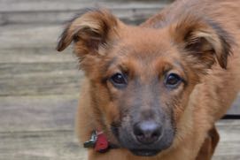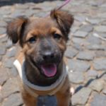 We brought Betsy in at about 5 or 6 weeks of age. She was one of the three healthier pups, the only female, and the biggest puppy in the litter. She was fostered for a month and got great dog experience being fostered by Tessa and Gerson with their large mixed pack. She is friendly and very affectionate. She is learning her basic behaviors quickly and loves to play the training for treats game with her foster family. She now in foster with a great couple who are making sure she sees all kinds of sights and sounds, meets all kinds of people every day, and has a great base.
