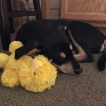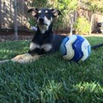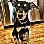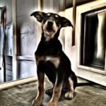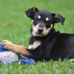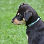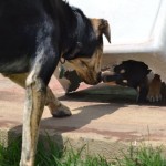 Betty is the second largest puppy of the five. She is a sleek and shiny black and tan with very defined markings. She is a gentle, friendly and playful puppy, very smart and food motivated. She is a delightful puppy and is learning her basic behaviours quickly and joyfully. She is sleeping all night in a crate, riding great in the car, and happily comes when called. She is being raised with two cat and and is properly respectful of them. She gets along great with other dogs and puppies.