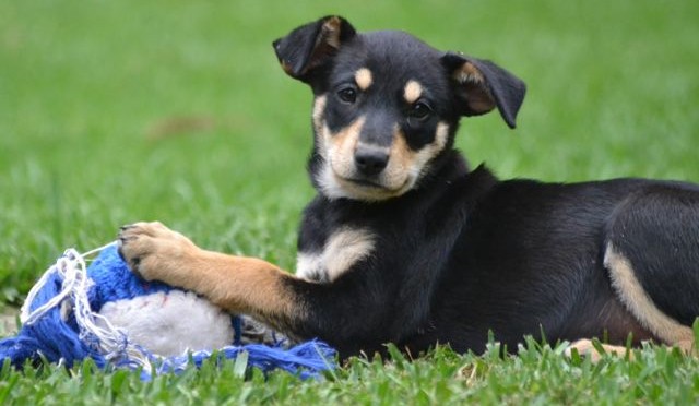 Betty and her siblings were born January 6, 2015 to a dog belonging to a poor family near Antigua. An independent rescuer named Francesca checked on them and the mother, bringing the female food so she could produce enough milk to nurse her babies, deworming the mother and puppies, and making sure they were vaccinated once they were old enough. She constructed shelter for the puppies with plastic wash basins, and has arranged to have the female spayed. Placing the puppies was urgent for her, as mixed breed puppies are not in demand in Guatemala.