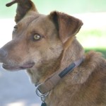 Carmelita was probably about a year or a year and a half old when we brought her into our makeshift shelter in mid January of 2011. She was very debilitated and had a terrible skin condition. In spite of this, and despite the terrible treatment she had received from so many people, she gave us her trust and quickly became a sweet and loving dog with us. Over the months of her recuperation, her body healed, but her trust of strangers was gone. Carmelita is extremely loving with people she knows, and with new people who come into the sanctuary play yard or interact with her. But she is predictably unpredictable on the street. What triggers her fear (and fear aggression) varies day to day. Some days it is a boy in a blue baseball cap, other days a person carrying wood, or a flag….