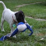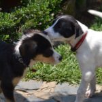 She has already learned basic obedience behaviours like “sit”, “down”, to target your hand with her nose, and to walk on a leah. She sleeps all night in her crate, is up to date on her shots, and is already spayed.