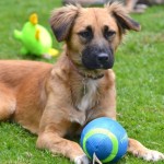 Claire gets along with every dog and puppy at the rescue. She loves people of all shapes and sizes, and is a gentle, sweet dog.
