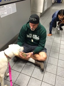 Crema meeting her new mom and dad