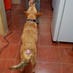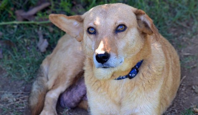 We contacted them and told them we would make space for the mother dog. Delta arrived with us on  February 8, 2016. She was swollen with milk and had an open, seeping wound above her tail.