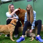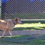 She is walking great on leash, and is just fine off leash, too. Delta gets along with all the dogs and puppies. She is friendly and appropriate, and very tolerant of the little ones.