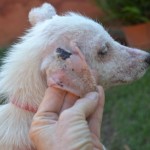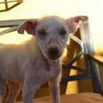 Dobby was found by good samaritans in a nearby town. They contacted us asking us to take the puppy, and when we had located a foster for the pup, the kind folks couldn’t find the sick puppy. The pup reappeared almost two weeks later, in even worse shape than before.