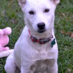 Dobby is a spunky, friendly, affectionate and well-behaved puppy. She will be small-she is already between 5 and 6 months old, and weighs under 20 lbs. She is playful and loves people and other dogs. She is cat friendly. She has a very cute habit of “talking” when she is excited and has a growly, torch singer roar.