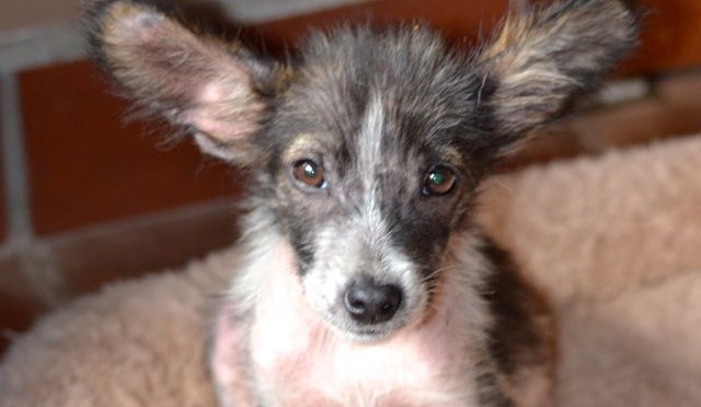 Over the next month he blssomed. His hair began to grow in, and he began to play with other dogs and his human fans. He stayed quite small in size, but his friendly and outgoing personality and boldness seem like that of a much bigger dog. After a very rough start, he became one of the sweetest, most lovely pups we have ever had the pleasure to know.