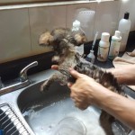 We managed to grab him, but the poor little pup was so terrified that he literally screamed, struggling to bite, as his sphincters opened. We wrapped him in a sweatshirt and held him until he stopped struggling and started to calm a bit.