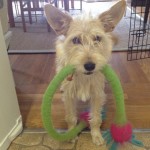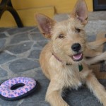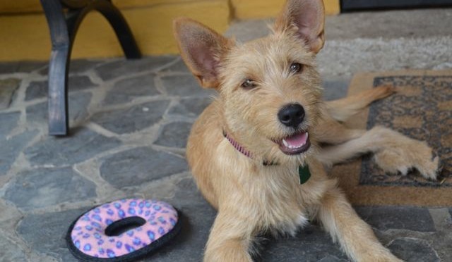 Ellie was dumped in the city of San Cristobal near Guatemala City at about 5 months of age. We have no idea who could have dumped this puppy. She is cuteness itself! Ellie is some kind of shaggy terrier cross-possibly part Schnauzer.  She was spotted by one of our volunteers when she was almost run over, obviously without a clue about traffic or the dangers of vehicles.