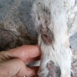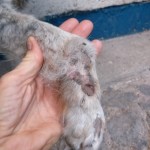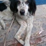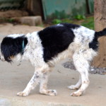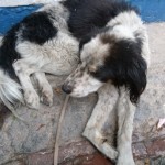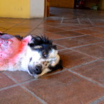 Freddie, whose pre-rescue name was “Oso”, came to us via a convoluted chain of caring good samaritans. He was scrounging food in the streets of a town named San Martin Jilotepeque, about one and a half hours from Antigua when a volunteer team working with a group called Hug it Forward spotted him. He would have been hard to miss, as in addition to being filthy, matted, and completely ratty looking, one of his forelegs had been broken and set on it’s own, with the foot pointing backward, forcing him to walk on the back of his wrist. He had actually lost his two middle toes from dragging them on the pavement.