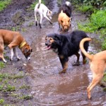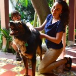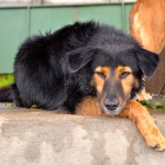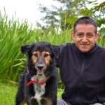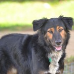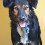 Guapo is a gorgeous Setter/Golden/Rottie mix (maybe). He was rescued by Paula Hillman after she found him abandoned and severely injured in a field. He had a shattered pelvis with a bone protruding, and was skeletally thin. She took him in and nursed him back to health, but after several months she decided that he was too much for her and asked us to take him. When we took Guapo in he was physically healed, but had many severe behavioral problems. He was extremely reactive toward joggers, bicyclists, and some other dogs. and had bitten several people. He had severe food guarding issues. He leaked urine whenever he greeted you. Guapo has been a favorite dog at the Cerro since his arrival. He is very loving and affectionate, and gets along with all the other dogs. He is beautiful, loves to play and is great with children. He still has some leash reactivity and needs consistent work with adding food to his dish. Guapo’s obedience in lower distraction situations is excellent. He needs continued work in higher distraction areas. Guapo needs a lot of daily exercise to help him stay calm. He has moderately high anxiety and needs structure and calm entries and departures to keep him relaxed. He loves other dogs, and does well with most other dogs, but loves to be the center of attention, so would do well as an only dog. Guapo no longer triggers on joggers or cyclists. Just a gentle reminder to target your hand or look at you is enough to redirect him to make a good choice. He was adopted by Ben and Mary Florence in the summer of 2014, and we sent him on to New York City to join them when they moved.