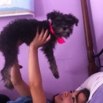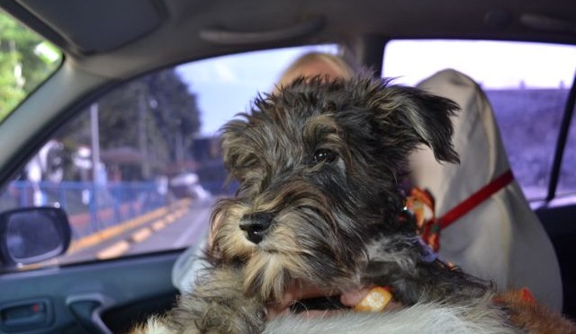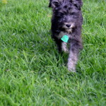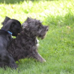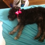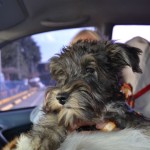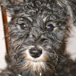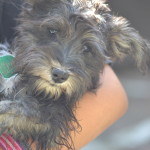 Hilde is a purebred miniature Schnauzer puppy, supposedly born March 23, 2013. We think that she was younger than this, as she still has not begun to teethe (as of July 29, 2013).Hilde was dropped off to the Revue office by a woman who had bought her about ten days previously from a local pet shop and ten days later decided that she didn’t want her. She was in reasonably good shape, but did have severe diarrhea which took a couple of weeks to resolve.
