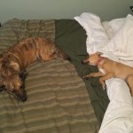 We took the babies for periodic play dates and social times and received the bulk of the puppies upon weaning. Several went into local foster homes. The pups have all be sterilized, are up to date on their vaccinations, and several have now been adopted in the Bay area.
