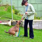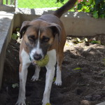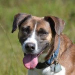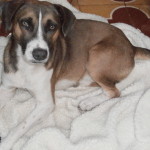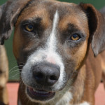 Joaquin is a stunningly beautiful brown and white short haired male, about a year and a half old. He is a wonderful dog with a great personality. He is athletic and strong, and loves to go for long walks or runs. He is great off leash and sticks right beside you. We call him our velcro dog! His recall is awesome, and his leash manners are great. He has been clicker trained and has excellent basic obedience He is very eager to learn and attuned to his trainer. He is great with people-all people, all ages. He loves children and would like to be a lap dog if at all possible! He is also very good with most dogs. He plays hard with his group of favourite buddies at the rescue. He doesn’t go out of his way to meet new dogs who come in. If one approaches him before they have had time together, Joaquin will growl and tell the dog to leave him alone. He always avoids conflict if possible.