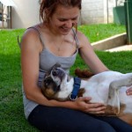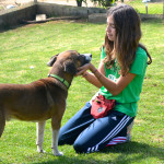Joaquin loves to play fetch and is a great soccer player. He is calm and easy going in the house. He does get car sick, unfortunately. We have been taking him on shorter car rides for a long time now, and he has gotten much better. We make sure that he rides on an empty stomach and he can now do trips of 20 to 30 minutes in the front seat without getting sick. He is our co-pilot! Strangely, although he gets carsick he still loves the car!