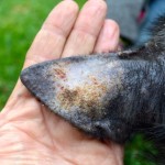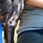 Kai was checked out by our vet, but aside from the usual parasite load (both internal and external), malnutrition, and a severe skin infection, he seemed fine. We had him neutered and put him in quarantine after vaccinating him, and after 10 days he joined the “porch pack” and lived with the older dogs while recovering. He rejoined the younger dogs at the end of May, 2015.