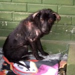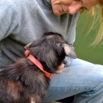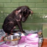 We spotted Kai a couple of weeks before he finally came in to the rescue, but couldn’t catch him. He was extremeley shy and fearful. But after a couple more weeks of trying to fill his belly, he was weak enough to finally catch. He had become a regular at our feeding station, and volunteer Tana Bailey managed to catch him (with quite a struggle) on March 4th, 2015.