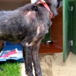 Kai was trying hard to survive on the streets in Antigua. He was likely between 8 and 10 months old when picked up. He had developed a severe flea bite allergy and consequently a very high “ick” factor. His hair began to fall out, and his constant scratching caused scabbing and a skin infection, which made him smell terrible. When dogs start to look like this, they are generally dumped to fend for themselves. No one wants them around, so life becomes very, very difficult for them.