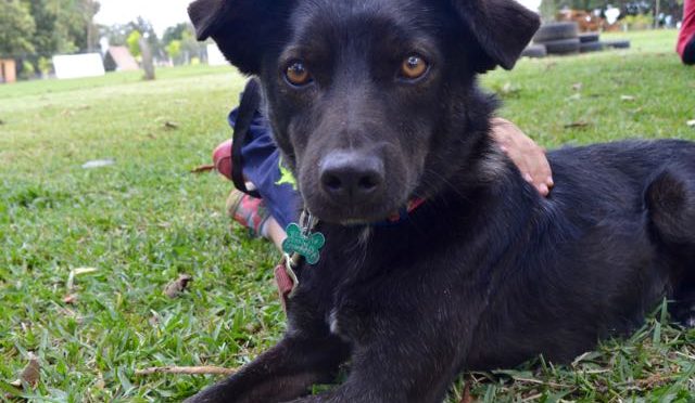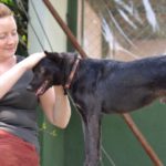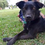 Kai was very fearful and hand shy at first, but within a couple of days with us he warmed up and became a very affectionate, playful dog. He is feeling good now, and his skin is healed and his coat is grown back in thick, lush and shiny. He has put on weight and is doing very well with his training. Kai trusts us but even so if we grab at him quickly when he isn’t expecting it or he feels threatened, he panics and can become defensive. He calms quickly with voice reassurance. He can be nippy with new people when they come into the play area, so we recommend introducing him to new people when they come over.