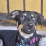 Lil Mama is one of two females in the litter. She had every kind of parasite imaginable, and had a severe case of sarcoptic mange. She has made a stunning recovery in her wonderful foster home and is now healthy and sleek, and ready for adoption. Lil Mama is the largest puppy in the litter and earned her name with her mothering attitude toward her siblings.