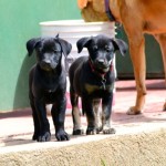 Mateo is a gorgeous black pup with tan leggings and will likely be a mid-sized dog (based on the size of his mother). He is a calm, sweet puppy. He is friendly and outgoing with people and playful and appropriate with all the dogs at the rescue. Mateo has been neutered and is up to date on all his shots.