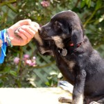 The puppies are all beautifully healthy and supremely well socialised, as they have been exposed to many well adjusted adult dogs and have had plenty of play time with a myriad of puppies. Our team of volunteers has been clicker training the pups individually every day, and Mateo and his siblings all have an excellent base of basic obedience behaviours.