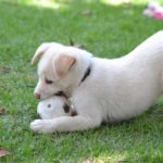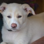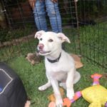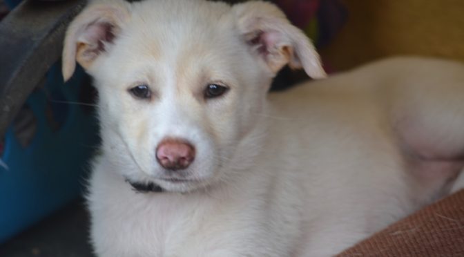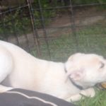 Maxi is a gorgeous creamy white puppy with pale yellow markings. She is sweet, friendly and very playful. She loves balls-absolutely adores them, and is already fetching. She is doing really well in her training, and follows right along when off leash, walks nicely on leash, and has a lured sit, down, and hand target. She is now weaned, and already has a family interested in adopting her.