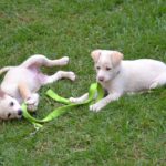 The pups are being carefully socialized to other dogs, puppies, cats, and kids. They are all doing spectacularly well.