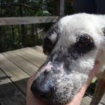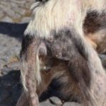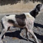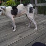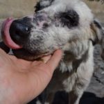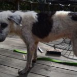 Mazi was in truly terrible condition. She was nothing more than skin and bones. She was nearly hairless, and covered in mange. We treated her with parasite medication, treated her mange, and started feeding her. She is recovering slowly, but doing quite well. She has put on almost 10 pounds since her rescue, her hair is growing in, and her skin is no longer crusted over and itchy.