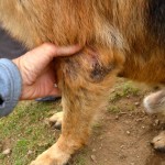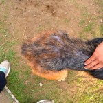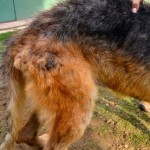 Merlin is a purebred German Shepherd. He is four years old. He is now putting on weight, his skin has healed, and he is gaining strength.