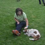 We agreed to take them, and Mindy arrived with a male named Chakra. Both dogs had apparently been at this site since 2002. Mindy has thick cataracts and can barely see shadows, she was terribly thin, her face covered with infected dog bites and her lymph glands swollen alarmingly. She was in great pain from untreated arthritis, needed a dental cleaning and extractions in the worst way. She had a severe flea infestation, and also had lice.