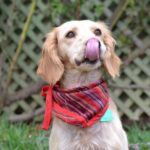 Mona  is a  sweet, young Cocker Spaniel mix. She weighs 23 lbs, and is petit and very, very pretty. She apparently was adopted by an American tourist, and dumped on the street, left to fend for herself when the tourist left Antigua. A kind hearted local woman took her in, but she did not want the dog and kept her in her laundry business during the day. She asked us to take this sweet Cocker mix in February of 2016, but we had no space. We told her we would take her in a month or two, as soon as we had placed an adult dog or two.