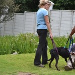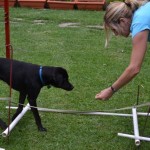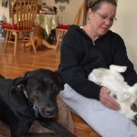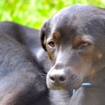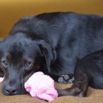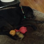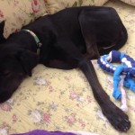 We believed that Murphy suffered some kind of injury to his spinal cord and did many tests to try to figure this out. We believe that either Murphy’s mother had distemper during her puppies early development, or that he as afflicted and recovered. He he has recovered extremely well. He walks with a distinct lag in his gait, and can tip over, but he walks and runs without help, plays hard with other dogs and pups, loves his toys and loves life. Murphy has no idea that he has any disability and has the happiest, most easy going personality ever. He loves to ride in the car, and accompanies us on hikes and mountain walks.