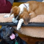He is the acknowledged Puppy Meister at the rescue, and is wonderful with all the pups and dogs. He loves to play with the puppies and is endlessly patient with them.
