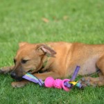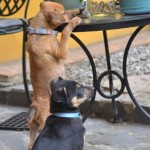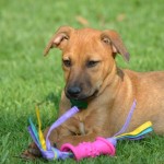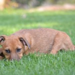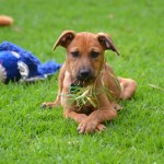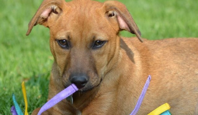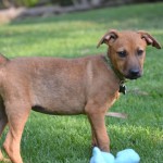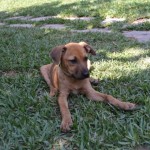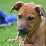 Nugget and her siblings were born January 6, 2015 to a dog belonging to a poor family near Antigua. An independent rescuer named Francesca checked on them and the mother, bringing the female food so she could produce enough milk to nurse her babies, deworming the mother and puppies, and making sure they were vaccinated once they were old enough. She constructed shelter for the puppies with plastic wash basins, and has arranged to have the female spayed. Placing the puppies was urgent for her, as mixed breed puppies are not in demand in Guatemala.