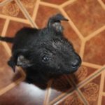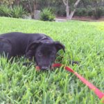 Pebbles can be very goofy. She loves to play. Pebbles is very smart. She can sit, lie down, target, almost shake and she has been walking on a leash for a long time. She loves her walks. Pebbles learns quickly and is very food motivated, she is also super social. She loves nothing more than to wake up the girls by jumping in bed with them. Pebbles is hard to resist. When she came to us she was recovering from mange. So she was bathed and massaged with coconut oil daily. Although she didn’t love the bath she was tolerant of that and loved her massages. Very quickly her fur came back and it is black as night. Her eyes are too. She is a beauty, inside and out.