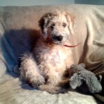 Rosey was found by a kind Guatemalan in a street behind the Antigua market. Some children had her and were trying to sell her for about $2.00. The woman questioned them, and found that Rosey was clearly not their dog. She took the four month old puppy and went door to door asking if anyone knew her. No one did, so she called us. We posted Rosey as found, believing that someone must be looking for her, but no one ever stepped up to claim her.  Eventually we spayed Rosey and placed her in adoption. A puppy this cute and sweet doesn’t stay homeless for long. She was very quickly adopted by a visiting nurse, and moved to Vancouver Island. Sadly, her adoption didn’t work out as Rosey decided she didn’t like the family’s female lab. The Vancouver Island Humane Society found Rosey a new home with a wonderful couple, and Rosey is now an only pup, and doing great!