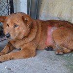 Rosita was a frequent visitor to the feeding station we operate in front of the Revue office in town. We watched her go through several heat cycles, trying to take care of an unknown number of puppies. On her last heat, Terry managed to lure her into the office and trap her. She was spayed by Dr. Calderon, but while he was operating he noticed that Rosita had a huge hernia on her flank-clearly from a deep, hard blow of some sort.